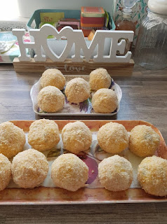 A kihűlt rizshez hozzákeverünk 1 egész tojást, és a reszelt parmezánsajtot, majd az apróra vágott bazsalikomot is belekeverjük. a rizsből egy diónyi mennyiséget a kezünkbe veszünk, a közepébe teszünk egy teáskanál gombás ragut, befedjük szintén rizzsel, majd golyót formázunk belőle, és hagyományos módon bepanírozzuk ..... liszt, tojás, zsemlemorzsa. A bepanírozott rizsgolyókat, forró olajban szép barnásra ( narancsosra) kisütjük.